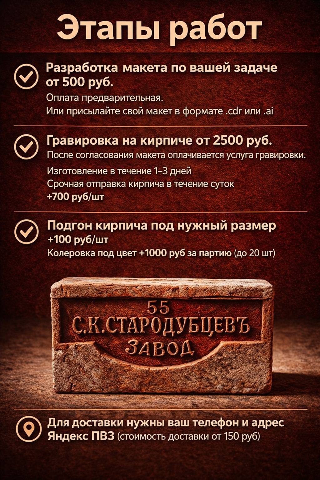 Поверхностная лазерная гравировка на кирпиче стирается за пару лет. При ручной индивидуальной гравировке шрифт утопает на 2-4 мм. Такой след не срежет даже болгаркой!
